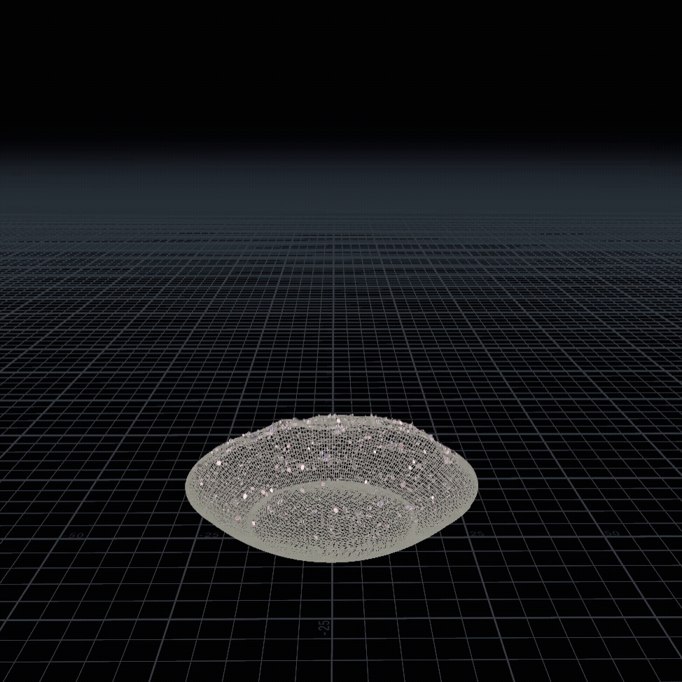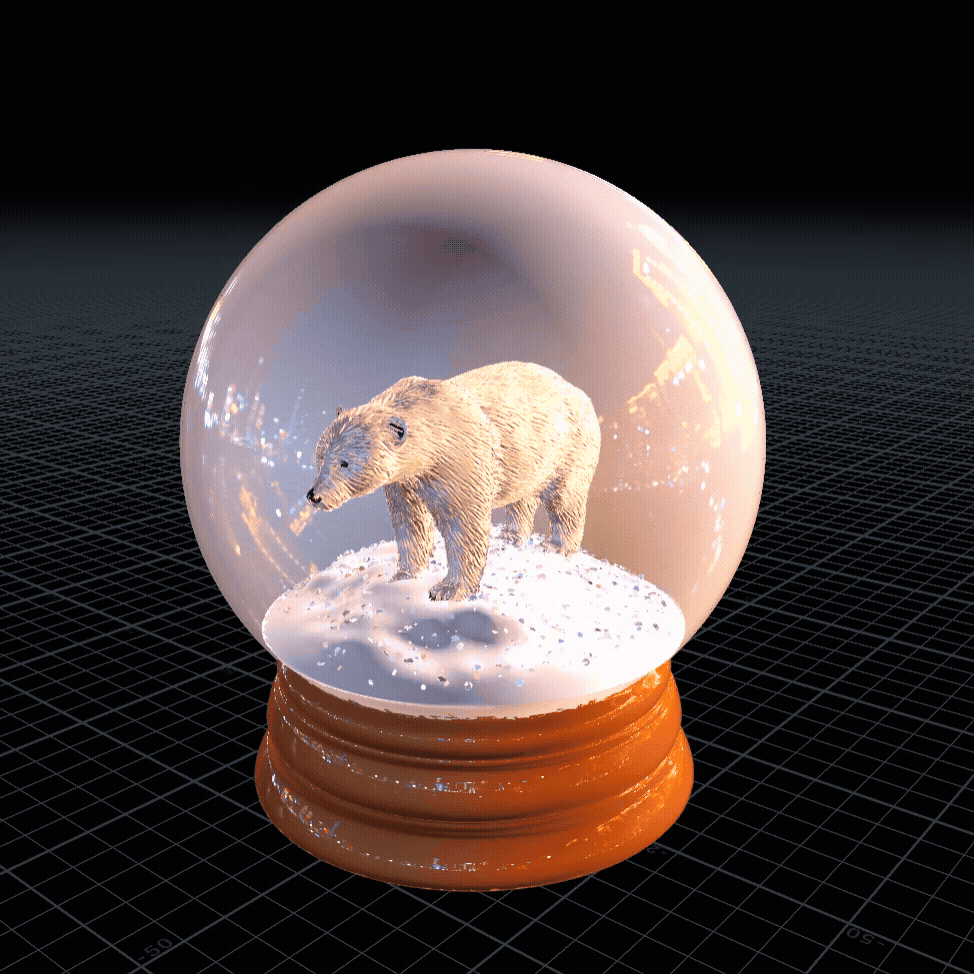 For the first pass of the snowglobe effect, I focused on accuracy. I looked up reference of snowglobes, and then tweaked forces and drag, as well as the colliders, until I found a motion that felt accurate. This is the first GL render I sent to the creative director.